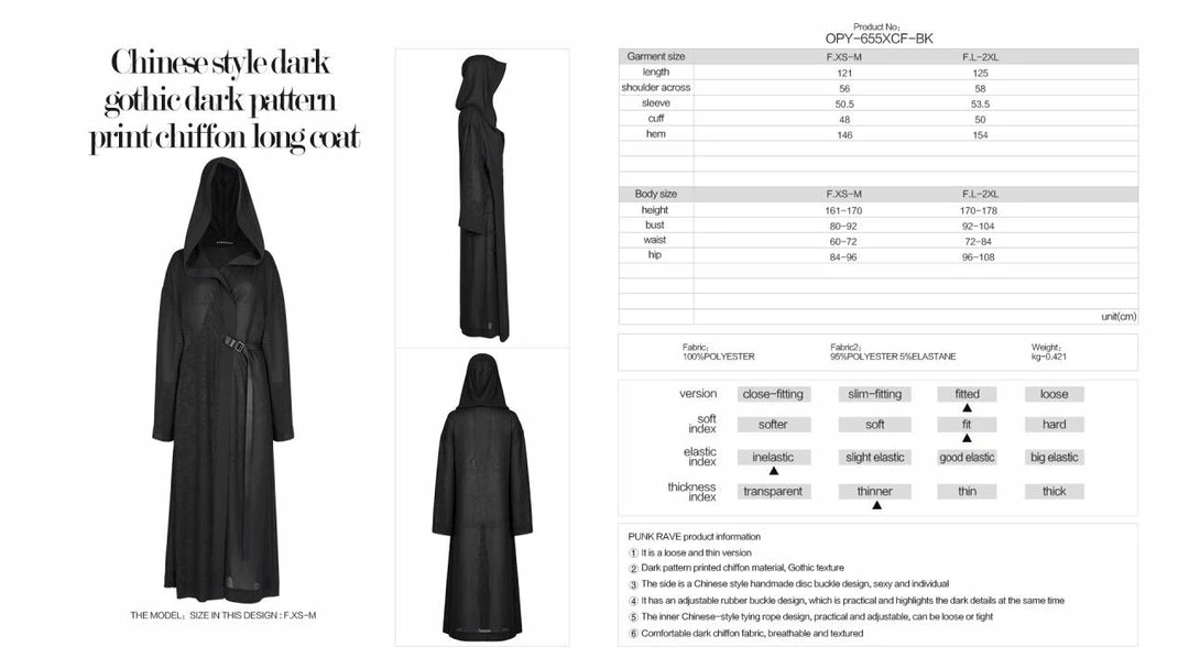 - Elevate your gothic fashion with the Punk Rave Tianna Chiffon Coat. This lightweight jacket features a chic chiffon fabric, perfect for layering over your favorite outfits.