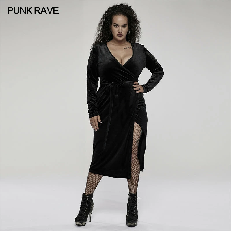 Punk Rave Viola Velvet Wrap Dress | Gothic Plus Size New Arrival
