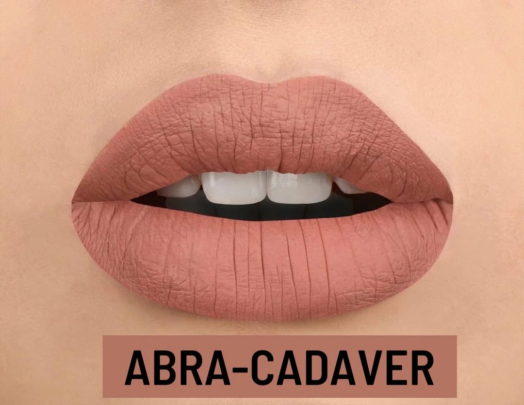 Radioactive Unicorn Abra Cadaver Lipstick Lipstick 8ml: Matte nude colour liquid lipstick with a light vanilla scent. This lipstick features true staying power and is non-transfer while containing added moisture to prevent flaking and cracking. Vegan and cruelty free with a light scent of vanilla.