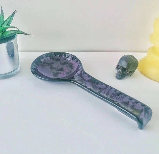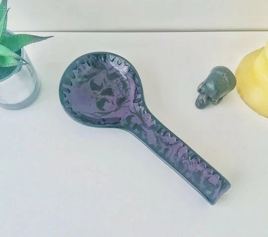 - Enhance your kitchen decor with the Weird & Wonderful Ceramics Purple Skull Large Spoon Rest. This unique, handcrafted ceramic piece is both functional and artistic.