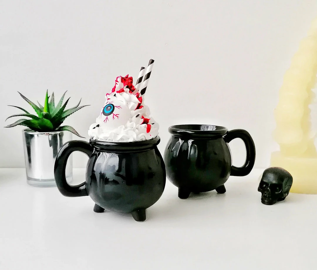 - Add a touch of mystery to your kitchen with the Weird & Wonderful Matte Black Bat Cauldron Mug. Perfect for Halloween or gothic-themed decor.