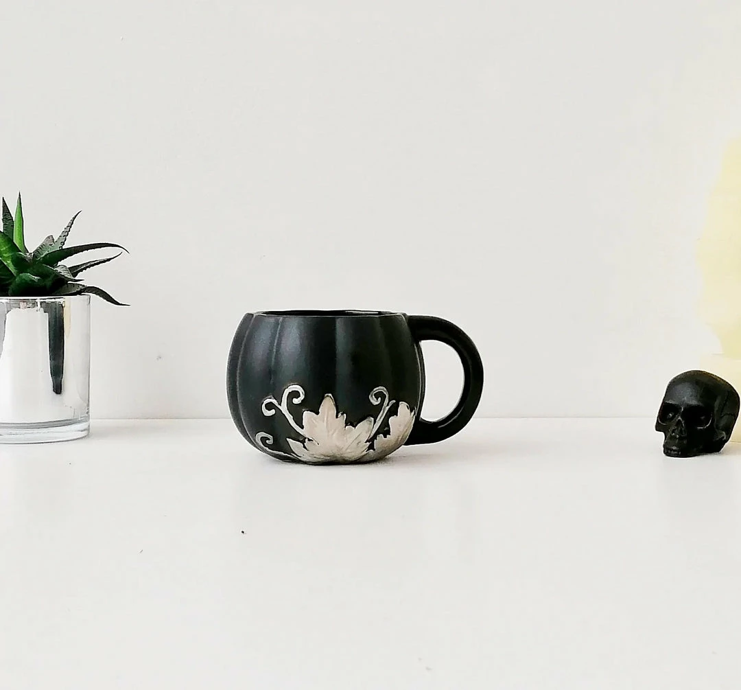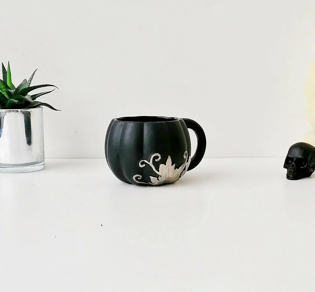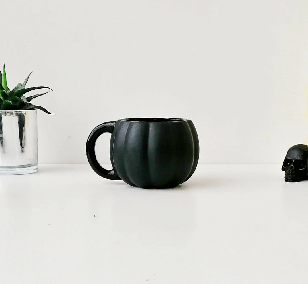 - Elevate your morning routine with the Weird & Wonderful Matte Black & Silver Pumpkin Mug. Its unique design is sure to make a statement in your kitchen.