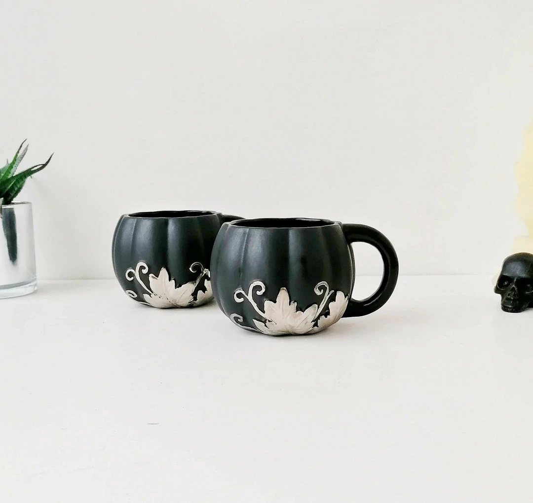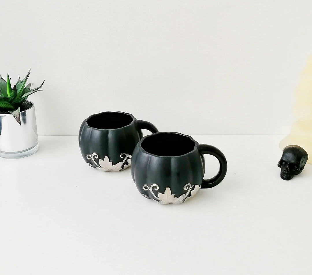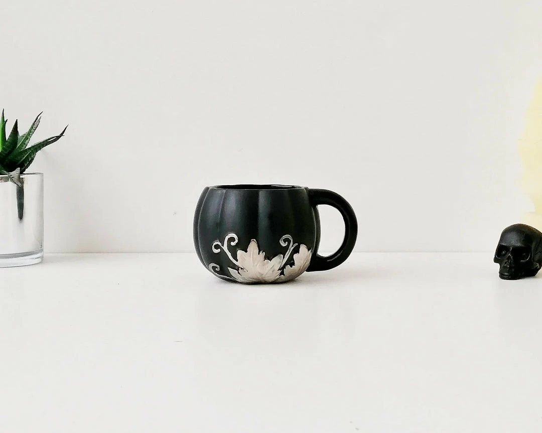 - Elevate your morning routine with the Weird & Wonderful Matte Black & Silver Pumpkin Mug. Its unique design is sure to make a statement in your kitchen.