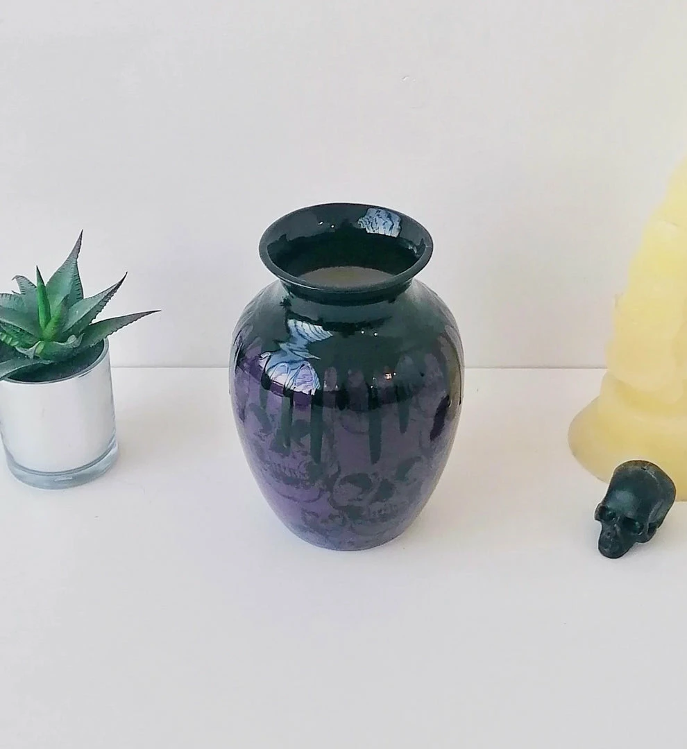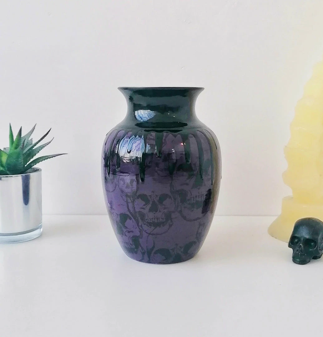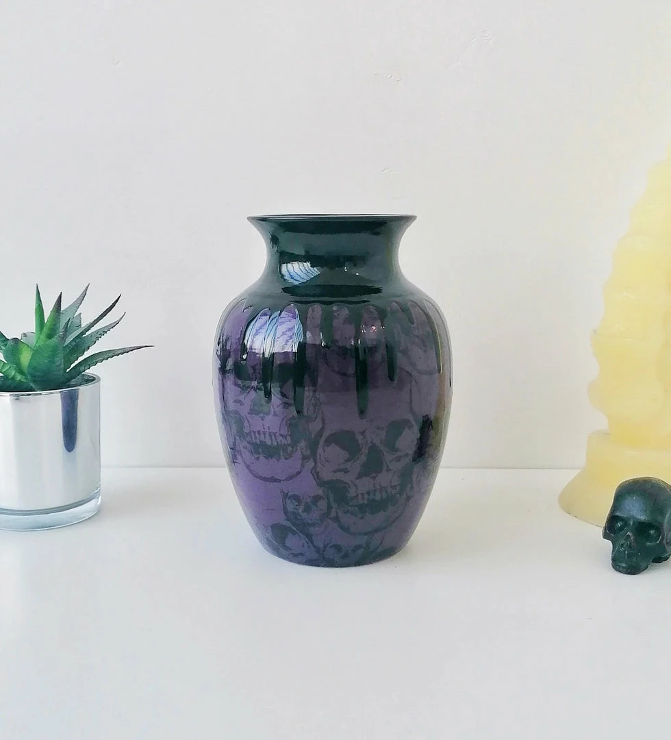 - Add a touch of the extraordinary to your home with the Weird & Wonderful Purple Skull Ceramic Vase. This handcrafted piece combines artistry and functionality, making it a standout addition to any room.